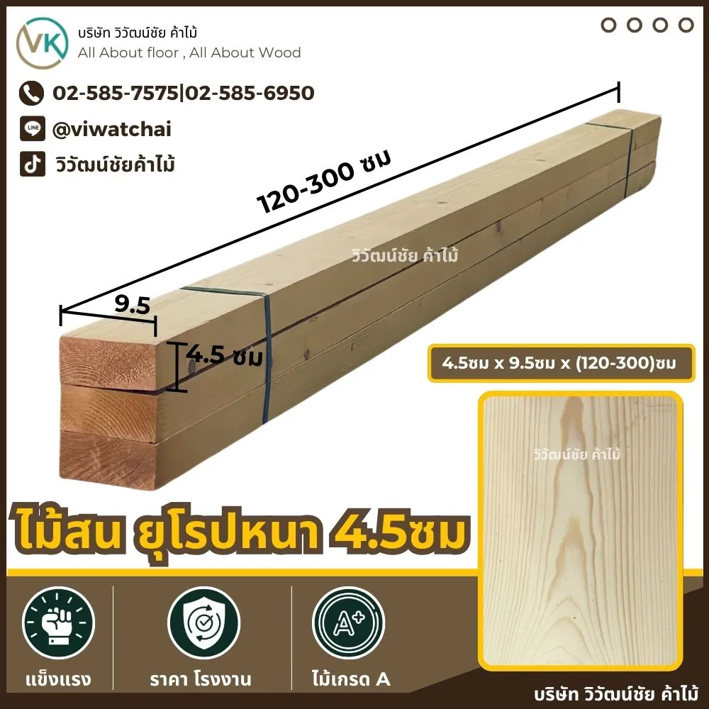 - ความหนา 4.5 ซม. x กว้าง 4.5ซม. x ยาว 240–300 ซม.